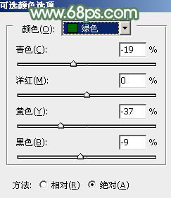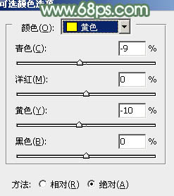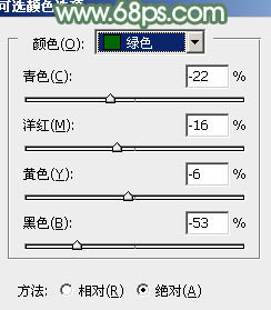 1、打开素材图片,创建可选颜色调整图层,对黄,绿进行调整,参数设置如图1,2,效果如图3。这一步把背景部分的绿色稍微调淡一点。