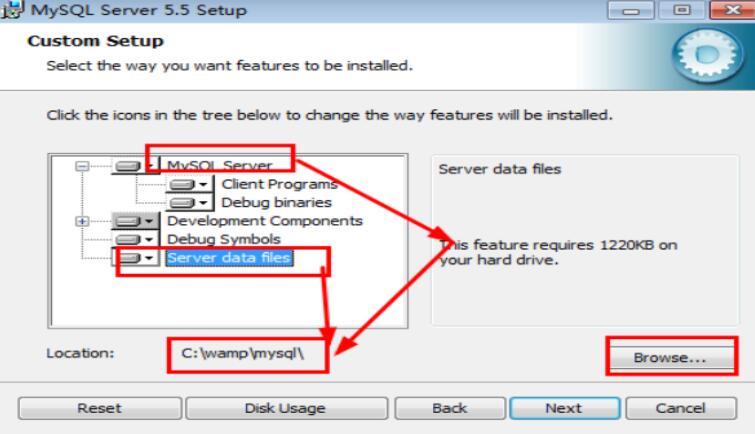 这里需要注意的是:设置MySQL服务器和MySQL数据文件的存储位置,建议都存到一个mysql目录文件中。