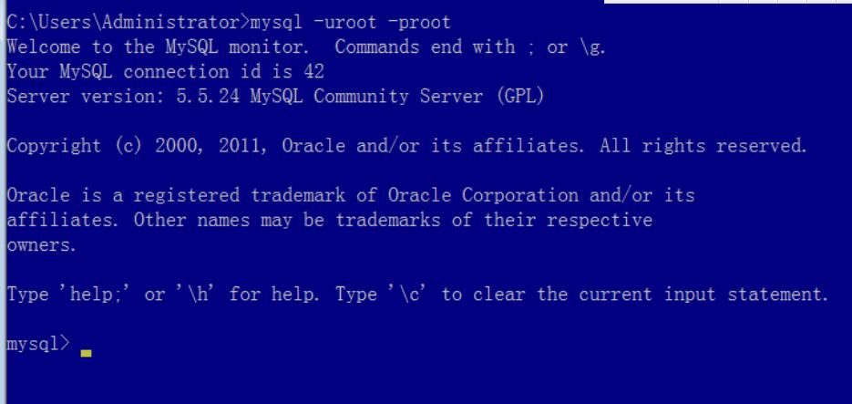 在cmd下输入命令:mysql -uroot -p密码(你当时设置的密码),如果显示如下,说明mysql安装成功了。