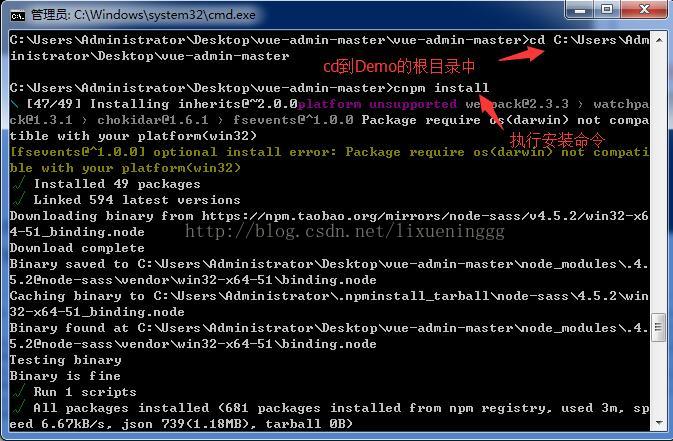 3.安装完淘宝镜像,我们将下载好的官方Demo解压下来通过控制台进入该文件夹的根目录下