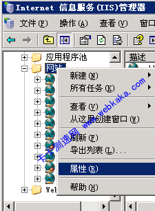 1、打开IIS,右键点击“网站”,选择“属性”