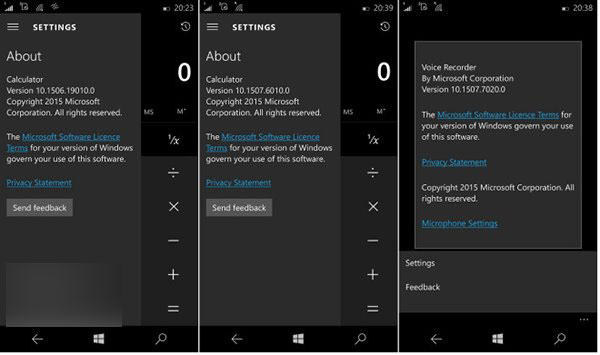以上就是喜悦钢笔最近收集整理的关于Win10 Mobile预览版10149:相机、Windows语音录音机、计算器更新的全部内容,更多相关Win10内容请搜索靠谱客的其他文章。