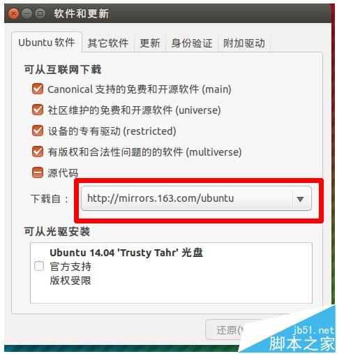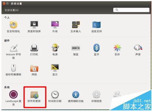 打开“系统设置(右上角的齿轮里或者启动器里)----------->软件和更新”