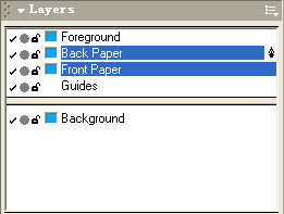 拷贝 这个矩形,选择 Front Paper 层将其粘贴进去,形成卷边的一道阴影。