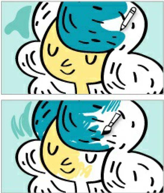 你可以用画笔工具给作品上色,使用不同的笔触会产生不同的肌理效果。或者你也可以用铅笔工具画出形状,进行大范围的平铺上色,这是一种教高效的方法。