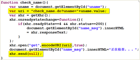 var uri = "check_name.do?uname="+uname.value;