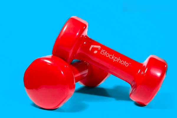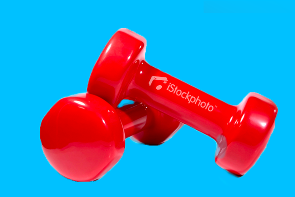用快速选择工具把哑铃主体给扣下来,随便来个天蓝色背景作衬托。
