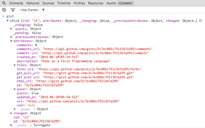 打开Chrome的Console,输入gist,可以看到Model获得的属性: