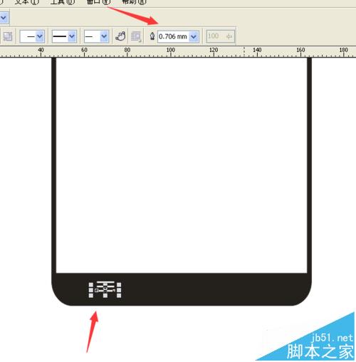 12、在手机的下边,画出三横做为手机的菜单键,设置这三横的轮廓为0.706mm,并填充为白色。