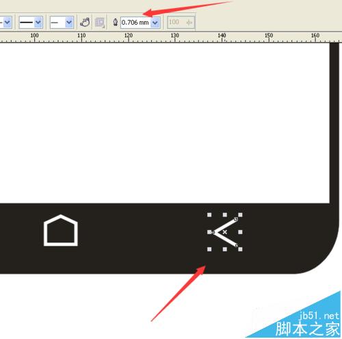 16、选择手绘工具,画出返回键,设置这个返回键的轮廓为0.706mm,并填充为白色。