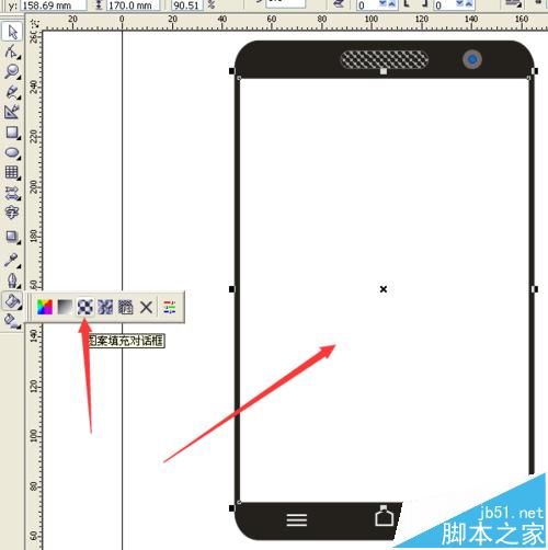 18、用挑选工具选择白色长方形,再点击择填充工具,再选择图案填充对话框。