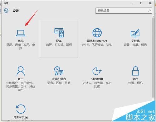 2、进入设置界面,点击系统(显示,通知、运用、电源)