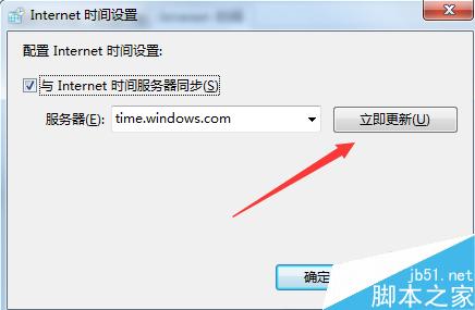 4、在弹出的对话框中勾选上【与Internet时间服务器同步】然后点击服务器右方的【立即更新】选项。