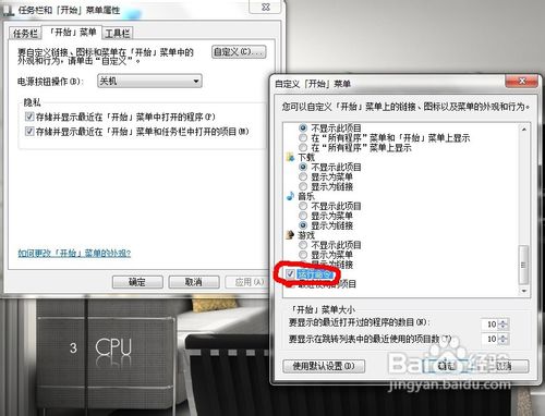 打开开始菜单——在右下角空白处鼠标单击右键——属性——自定义,在“运行命令”前面打勾——确定。