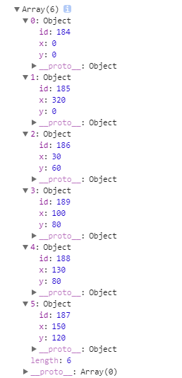 现在已通过程序将5个模块div的坐标信息用一个对象数组保存