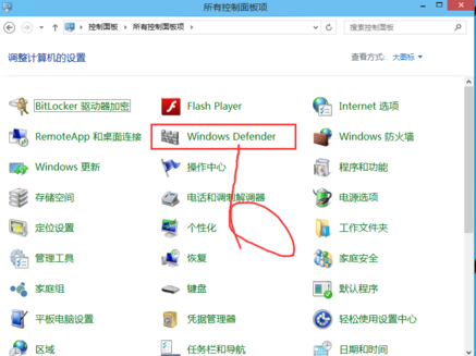 2、将控制面板的查看方式选择为“大图标”,然后从列表中打开windows defender就可以顺利打开了。
