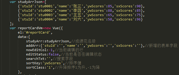 addArr:{'stuId':'','name':'','ywScores':'','sxScores':''},//新增的表单字段