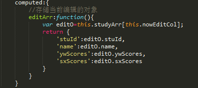 这里是计算属性,它的值由data下的nowEditCol来决定,相当于你写一个$watch方法在监听nowEditCol,但是此处vue内部帮你处理了,推荐在项目中使用。