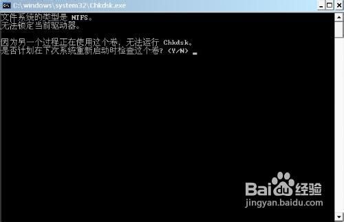 5、如果遇到该卷被使用,是不是重新检查该卷,点Y回车