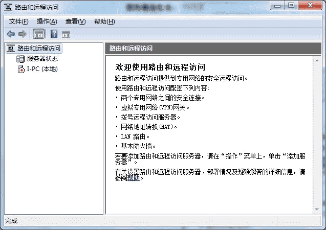 点击服务器状态,可看到目前只有一台服务器(就是本机)。以我的计算机名为I-PC的服务器为例,右击I-PC并选择“配置并启用路由和远程访问”打开向导。
