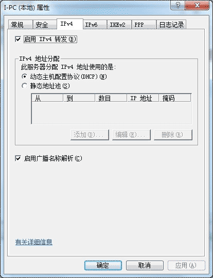 然后我们还需要配置VPN的IP地址分配方式。右击I-PC(本地)并选择属性,转到IPv4标签页。