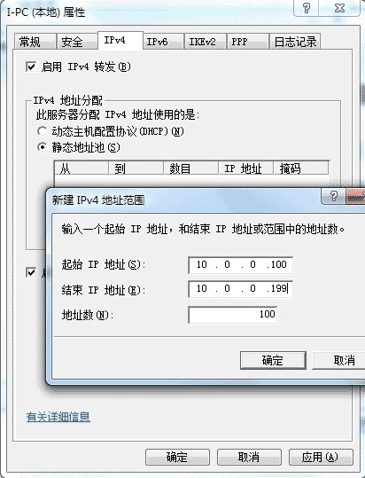 我用的是10.0.0.100~10.0.0.199共100个地址。这时候主机一定是10.0.0.100,就是地址池的第一个地址。