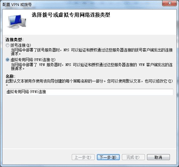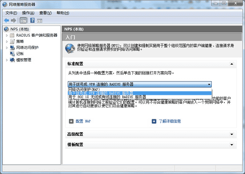 NPS内置了一个用于拨号或 VPN 连接的 RADIUS 服务器配置。我们直接选这项,打开向导。