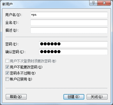 新用户默认隶属于Users组。已经具备VPN拨入权限。