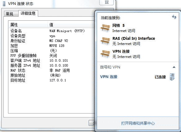 测试目的:架设VPN服务器并通过VPN访问内部网络
