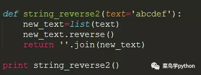 输入: string_reverse(‘abcdef') , 返回: ‘fedcba',写出你能想到的多种方法