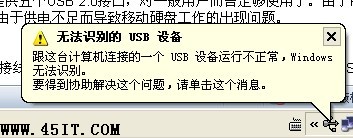问题处理:从“控制面板”进入添加和删除硬件的窗口,将所有USB设备都删除,重新安装需要使用的USB设备驱动程序。重新启动电脑,U盘等USB设备插在原来的故障接口上能够正常工作。无法识别的USB设备- 笔记本硬盘故障和移动硬盘,插在前置USB接口,无法识别。