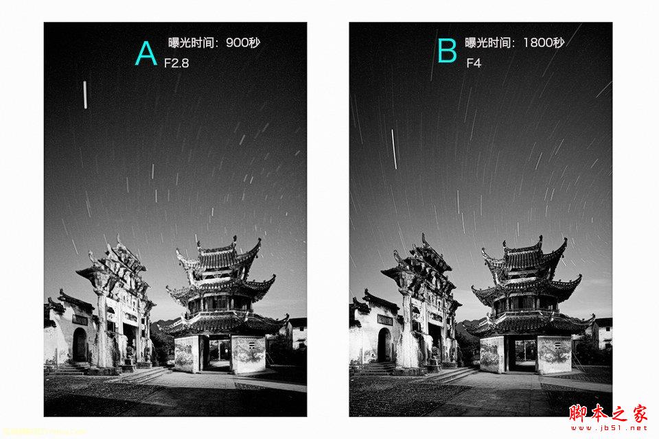 4、多次曝光:你首先需要一根能自动控制曝光时间、拍摄数量、拍摄频率的快门线,设置为间隔1秒自动拍摄一张;每张曝光时间2-4分钟,拍摄张数为30张,同样可以获得一张曝光总长度60分钟的星轨作品,必须记住的是ISO设置要提高500-800,原因就不说了,你失败几次就知道了。广角镜头拍摄案例对比图: