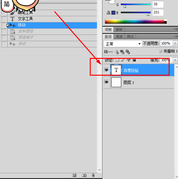 2、这时候就会有两个图层,单击“百度经验”这个图层。
