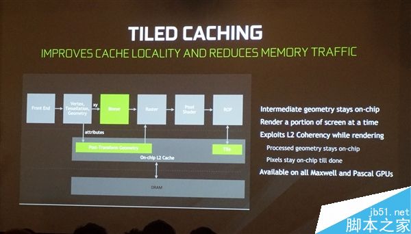 另外,GTX 1080 Ti还支持平铺缓存(Tiled Cache),进一步提升渲染效率和显存性能,降低显存通信浪费,再加上显存压缩,有效带宽号称可以高达恐怖的1200GB/s。