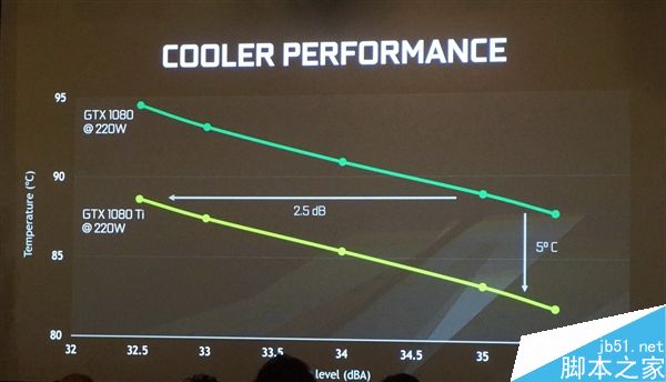 散热上也有了新的真空腔均热板设计,散热面积扩大了一倍,相比于GTX 1080同等噪音下温度降低5℃,同等温度下噪音降低2.5分贝。