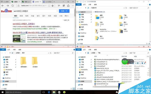 谁说一心不可多用?在win10强大的四区分屏面前,你想干啥就干啥,这叫娱乐工作两不误。