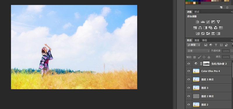 接下来的这几个图层,主要是对色彩的调整,整体思路就是继续提亮,调整天空和草地的颜色。