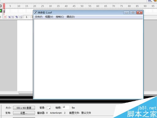 1、首先启动flash8,执行文件-新建命令,新建一个大小为550*400,背景颜色为白色,帧频为12fps的文档。