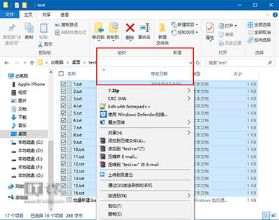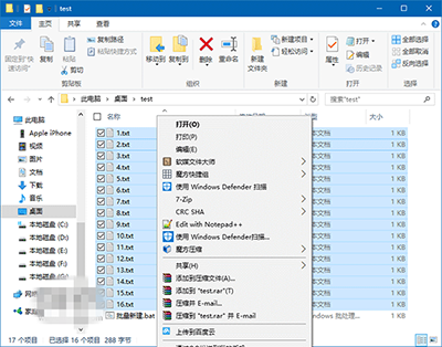 ▲图片说明:16文件同时选中后的右键菜单项目