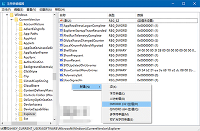 HKEY_CURRENT_USER\Software\Microsoft\Windows\CurrentVersion\Explorer