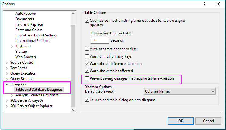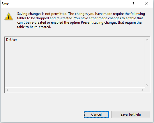 以上就是SQL Server 阻止保存要求重新创建表的更改问题的设置方法,希望对大家有所帮助,谢谢大家的阅读。