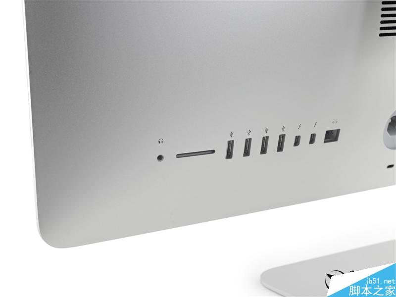 背部接口:耳机孔、SD卡插槽、四个USB 3.0、两个雷电2、RJ-45。