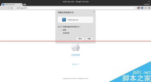 3、选择创建位置为桌面,重命名为QQ或者网页QQ(右键>属性>点图标可以修改图标显示,此步骤选择应用程序就可以,习惯桌面操作了)
