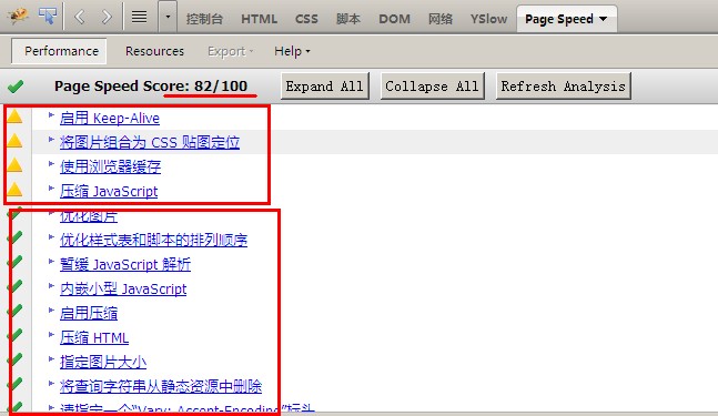 这个82/100是你这个站按照page speed的考核获得分数