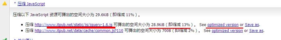 pagespeed给你的建议是 进行压缩以下的2个js。你点击后面的op...它会给你生成个压缩后的js。然后你可以替换原先的js即可。这地方只说明怎么做。当然了jquery也有min版的压缩后的js。