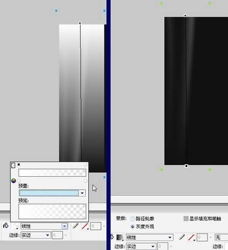 接着,在这个路径上方新建一个白色矩形,选择放射状渐变填充,不要边框,如图: