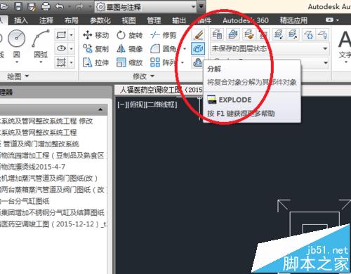 5、修改完毕后,就可以将图块拆解为之前的单个部件,具体做法:工具栏寻找”分解”命令标示