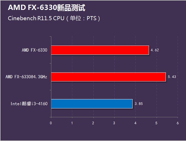 从FX-6330和i3-4160性能对比可以看出,原生六核六线程的FX-6330处理器在综合性能方面要强于i3 4160,网上关于“i3默秒全”也是不可信的。从前面的测试结果来看无论是日常应用还是游戏测试,AMD全新FX-6330处理器都可以说是表现更优秀,得益于其黑盒不锁倍频的特性我们看到FX-6330在超频至4.3GHz后性能还有进一步的爆发。
