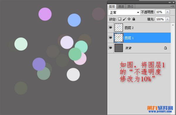 我们再新建一层,更换前、背景颜色,再在新图层上绘制,如图,修改图层1的不透明度,得到如图效果