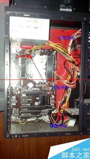 4、把电源插在主板,硬盘,光驱,显卡 等设备上的供电线全部拔下来保证电源没有连接任何设备 如图所示